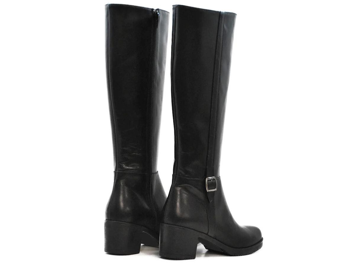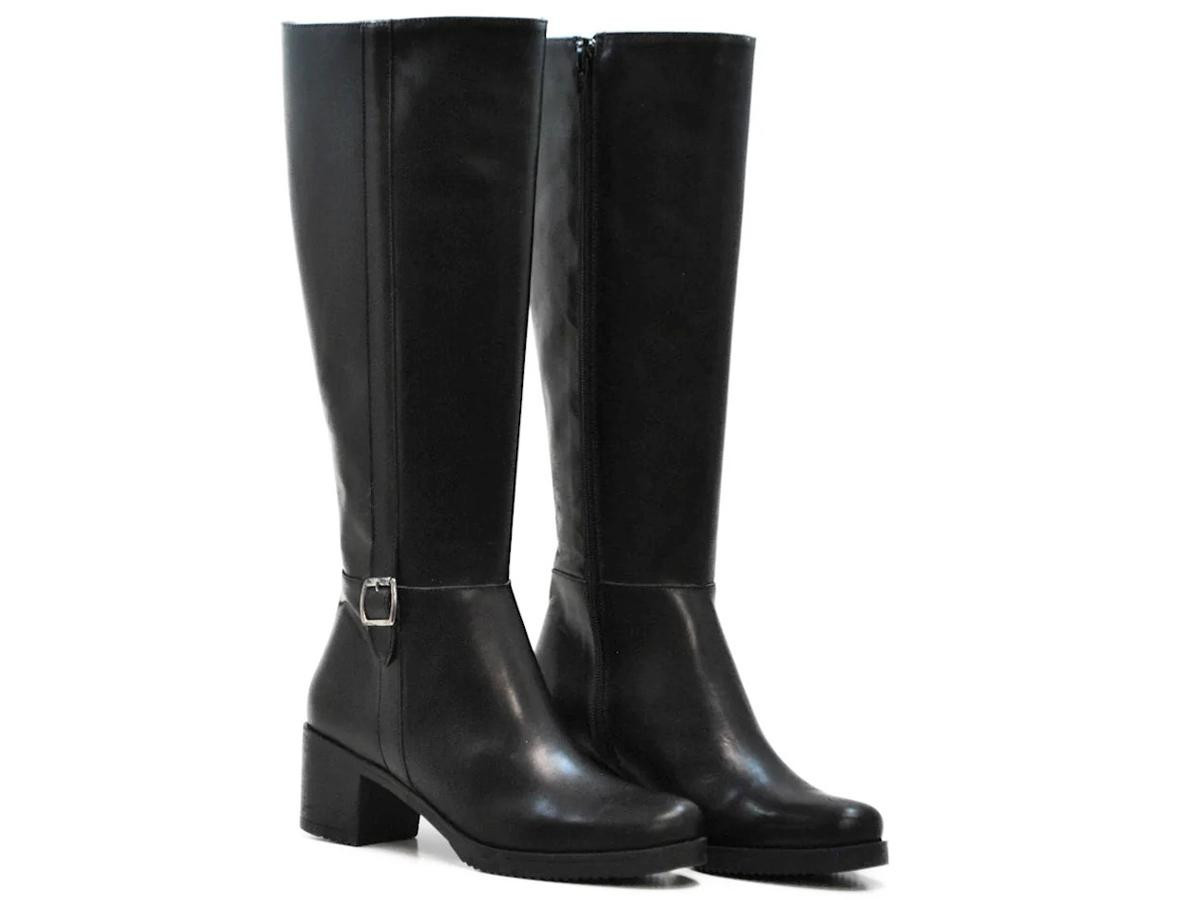 Bota alta de Helene Rouge en piel negra: diseño premium, silueta favorecedora y cierre práctico. versátiles para conjunto formal o urbano con un toque de lujo.
